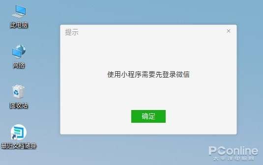 小程序在PC端一直不温不火,除了与操作体验有关以外,另一个原因可能就是不支持桌面打开了。此次PC版微信3.3.5在小程序右键菜单中,增加了一项“发送到桌面”功能,可以像建立桌面快捷方式一样,为小程序设置“桌面链接”。不过受限于小程序原理,桌面链接在启动时,依旧还是需要微信主程序支持的。如果当前微信没有登录,会弹出相应的操作提示。