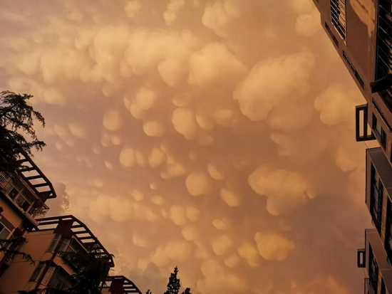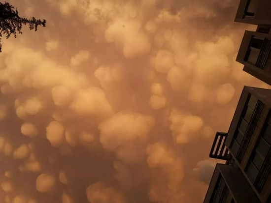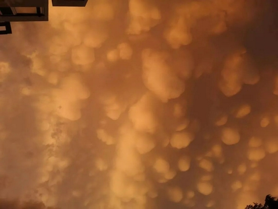 8月9日傍晚,北京昌平经历一次降雨过程,雨势渐止后,天空中出现了罕见的“乳状积云”。