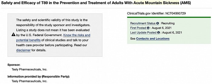 8月6日,国内知名医药上市公司天士力(600535.SH)在美国临床试验注册登记网站上登记了一项T89预防及治疗急性高原反应的III期临床研究。T89为天士力核心品种复方丹参滴丸在美国进行临床研究申报的代码。