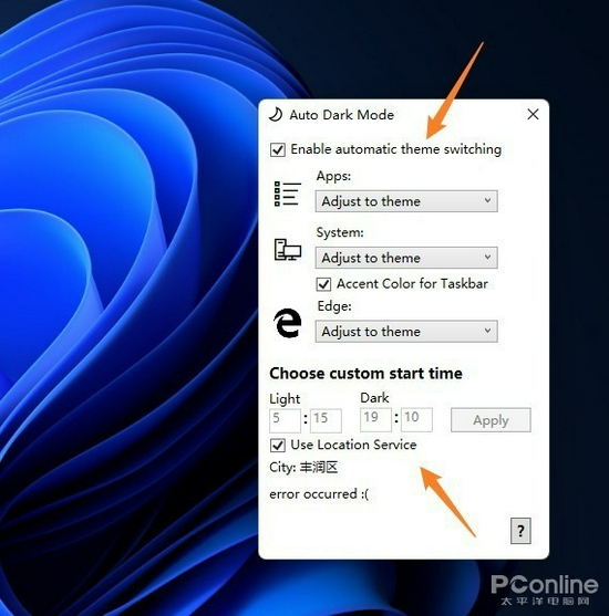 Win11 加入了全新设置面板及资源管理器,在暗色模式下表现更好。不过和 Win10 一样,Win11 的暗色模式也是需要手工切换的。Auto-Night Mode 的功能,是根据时间自动为系统切换日夜模式。同时软件还提供了系统、App、Edge 三组选项,可以让用户根据喜好,自行决定哪些模块切换,哪些模块不切换。