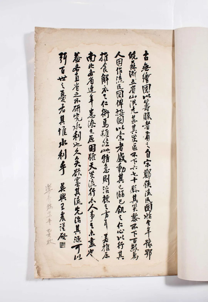 此次展品跨时长、涉事广,主题可能略显松散,然而每幅字画、每件展品背后都有一个动人的故事,能从某一侧面或视角,给人们带来新的认识,引发新的思考。如这次有两幅画轴,是王一亭早期画作,仿其师任伯年手法工笔细描,与我们常见后期作品富金石气息的画风截然不同。王一亭从1911年起曾多次组织大型救灾助贫义举,还曾亲临灾区,目睹灾情惨景,并创作《流民图》以筹义款赈灾。这次展示的一本《流民图》刊本是王孝方近日收购而得,内集己未年(1919)王一亭绘、吴昌硕题的六幅《流民图》,此画册当时刊印三千本,为宣传和发动赈灾而免费赠发。王一亭自命“白弄山人”,这种做法与一般商人、画家截然不同,足见他纯行慈善之举,全无功利之心,超脱俗世凡人的崇高境界。