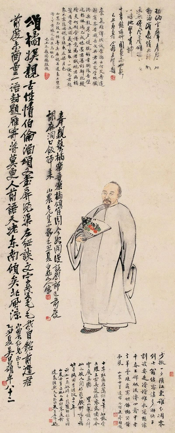立轴《山农先生像》王一亭画吴昌硕等题词