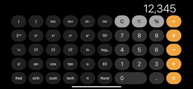 另一个吐槽点是很多用户觉得iPhone手机计算器只能够进行简单的加减乘除,其实只要关闭手机的竖排方向锁定,然后在计算器界面把手机横过来,我们就可以看到一个科学计算器。各种平方、立方、平方根、立方根、函数运算等,应有尽有。