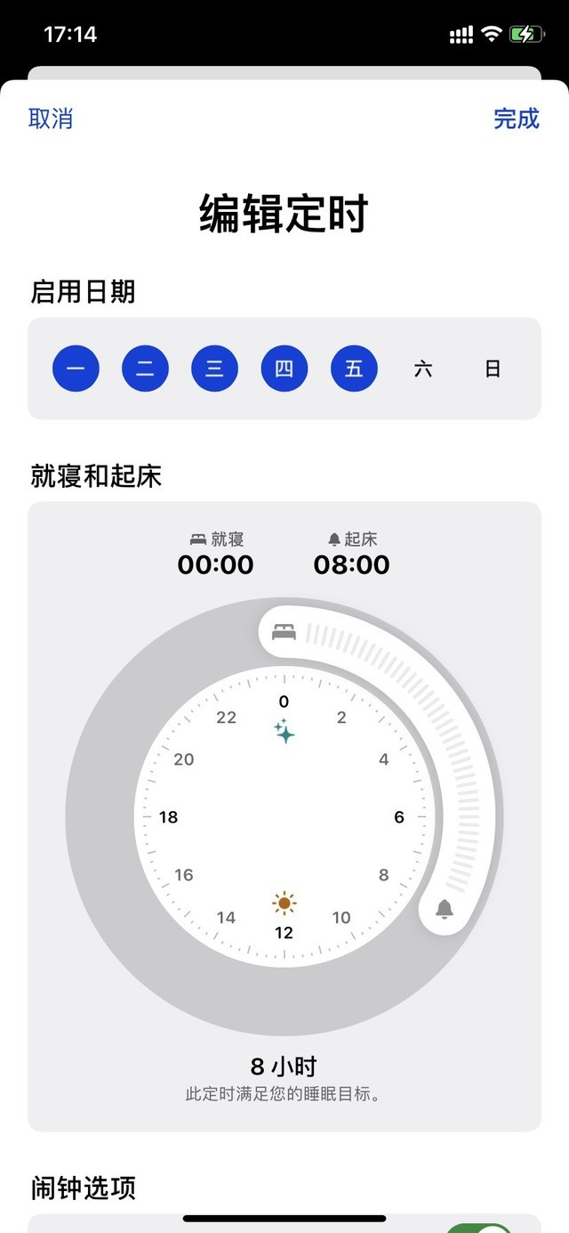 另外,当你设定好早上起床时间之后,就寝的闹钟铃声会比你设定的起床时间提前一些开始播放,让你慢慢从睡眠中被唤醒,这可以说是苹果对雷达铃声“反思”之后做出的最巧妙的改变。