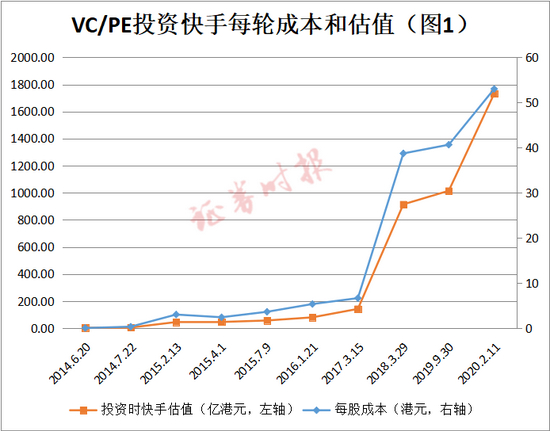 2020年2月11日,快手在上市前夕进行了最后一轮融资,引入了淡马锡,此时快手的每股认购成本已经达到53.03港元,估值为1733亿港元(图1)。