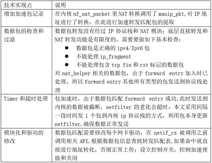 表1 包加速关键技术实现表