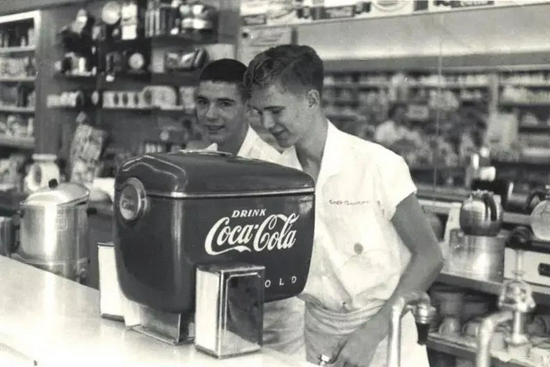 1886年,美国的药剂师约翰·斯蒂斯·彭伯顿为了寻找吗啡的替代品,以古柯酒为灵感,创造出一种混合了古柯和可乐果的葡萄酒,之后他又开始研究无酒精版本。放入焦糖色素,使糖浆呈现出葡萄酒般的独特质感。为了做出浓郁的口感,平衡酸甜,加入了酸橙汁、各种香料和树木中提取出的油。于是可口可乐就这样逐渐诞生了。