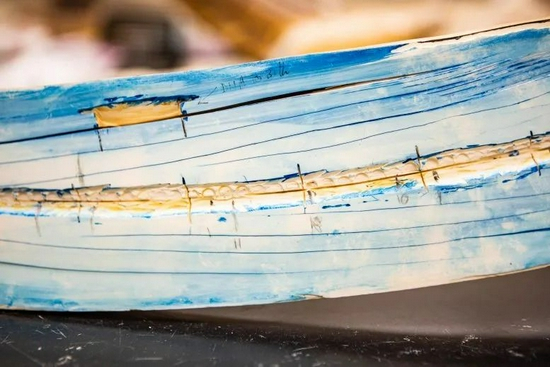 阿拉斯加稳定同位素设施中裂开的猛犸象牙,蓝色染色用于显示生长线。 图源:阿拉斯加费尔班克斯大学 JR Ancheta 摄研究人员将 6 英尺长的象牙纵向分开,并使用激光和其他技术生成了大约 40万个微观数据点。由于猛犸象牙的生长方式,在它们的一生中每天都在稳步增加新的层次。当将象牙纵向分开进行采样时,这些生长带看起来就像堆叠的冰淇淋锥,提供了猛犸象一生的时间记录。“从他们出生的那一刻到他们死去的那一天,都被记录在这本日记中,用他们的象牙来书写,”古生物学家兼北方博物馆馆长Pat Druckenmiller 说。“大自然母亲很少提供个体生活的如此详尽和终生的记录。”