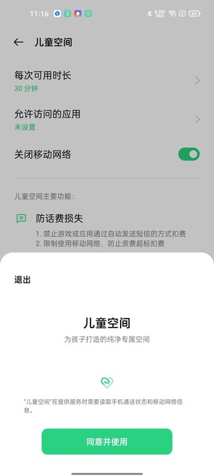 OPPO的儿童空间比较符合大众观念,用户在隐私界面就能找到该功能,该模式下可以禁止孩子通过自动发送短信扣费、限制孩子使用移动网络、禁止孩子修改系统设置、安装卸载应用(这个功能相当关键)、限制可以使用的应用以及时间,可以说是面面俱到。