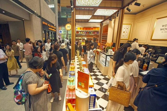 门店店型方面,T9的定位同样是“茶中的爱马仕”,门店内设有商品零售区和现制茶饮区,但门店面积相比TWG更为紧凑,也并未设置宽敞的座位区,消费者可以即买即走。
