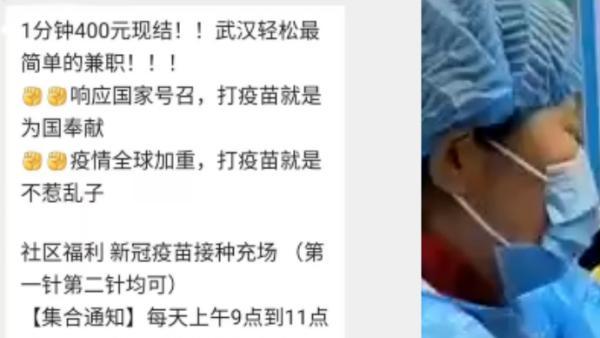 武汉多个微信群招募打疫苗者一针奖励400元 市长热线:质量无保证