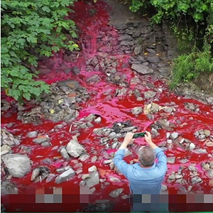 湖北一国企磷石膏库长期渗漏,染色剂污水直排导致河水变红