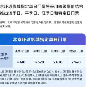 (北京环球影城指定单日门票价格来源:北京环球度假区微信公众号) 业内有观点认为,北京环球影城将重塑中国主题乐园新格局。
