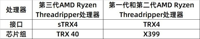 所以,如果是处理器和主板对应的话,TRX 40主板兼容的是第三代AMD Ryzen Threadripper处理器,X399芯片组主板兼容的则是第一代和第二代AMD Ryzen Threadripper处理器。