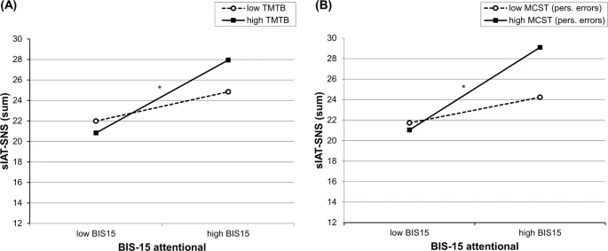 一些研究发现,互联网上短暂而即时的快速信息摄入会使人们更难长时间维持注意力。2020年于《自然》发表的一项关于“社交媒体使用症”(social-networks-use disorder)的研究显示,社交媒体的成瘾程度与注意冲动(attentional impulsivity)*的强度成正比。同时,注意冲动与社交媒体成瘾存在着一种双向影响,即有注意冲动倾向的人也更易受到社交媒体吸引。该研究团队还猜测,网络上的刺激或许能够通过影响大脑的注意过程来削弱自控力,这种冲动会让人们追求即时奖励而忽视长期风险。人们会更容易被社交媒体的铃声和视觉刺激吸引,从而对奖励产生渴望,这会使他们更难抑制自己的冲动[14]。