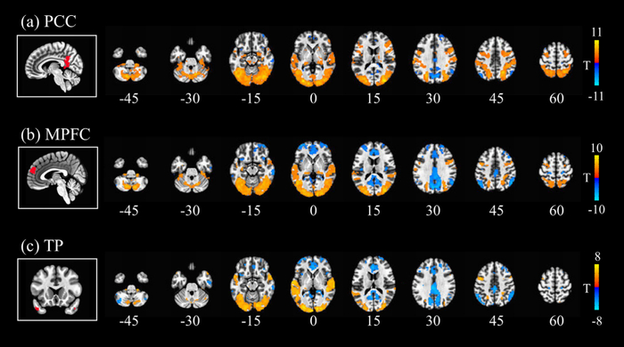 **背内侧前额叶皮质子系统(dorsomedial prefrontal cortex subsystem,dmPFC)包含了背内侧前额叶皮质、颞顶交界区域(temporoparietal junction)和颞极(temporal pole)。