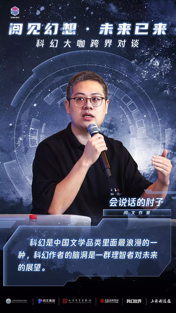 在这次活动上,由上海市科协、阅文集团联合发起,人民文学出版社、中信出版集团、科幻世界杂志社、上海科技报社共同参与的“科幻梦想启航计划”正式启动,各方将基于各自的优势资源,在文学创作、知识科普、行业交流、文创设计、影视制作等多方面深入探索合作可能性,阅文作家会说话的肘子、天瑞说符成为该计划的首批参与者。相信这种结合多产业联动的扶持计划能有力推动科幻产业的发展。