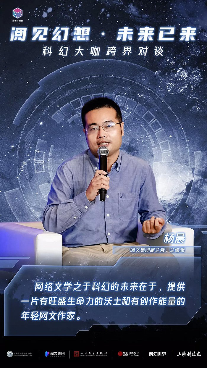 阅文集团副总裁、总编辑杨晨在发言中表示:“网络文学之于科幻的未来在于,提供一片有旺盛生命力的沃土和有饱满热情和创作能量、年轻的网文作家。”的确,未来不远,想象无界,科幻的魅力必然常在,在政策、网络文学、读者、影视平台等等各界力量的大力支持下,对于中国科幻IP市场的未来,我们应该满怀信心。