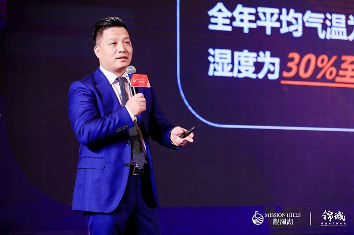 聚焦观澜湖片区发展,特邀主办方观澜湖地产营销总经理吴再雄,进行主题为【城市向南 观澜湖宜居生活2.0】的分享。吴再雄通过图片展示,从教育、商业、医疗及文体等四个方面,为大家介绍了观澜湖集团深耕海口14载,倾力打造的百亿醇熟国际化配套和健康优美的自然环境,即拥有全球最大规模的公众火山岩高尔夫球场群、五星级酒店群、观澜湖华谊冯小刚电影公社、狂欢水世界和火山温泉谷等众多知名休闲娱乐景点。