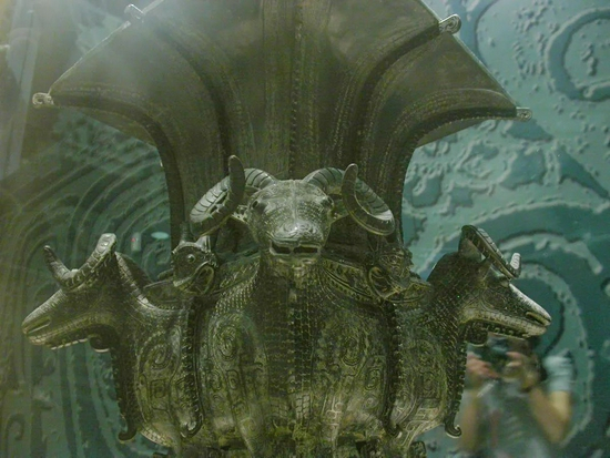 四羊方尊1938年出土于湖南宁乡,这一带曾经存在过的文化,其上层统治阶级来自商王朝。而四羊方尊、大禾人面方鼎之类的独特的青铜器,就像什变的月饼馅一样,也体现了文明的融合。事实上,商王朝为了获得南方的铜矿石,在长江流域进行了可观的扩张,势力直达大洋洲——虽然是江西省新干县的大洋洲乡。