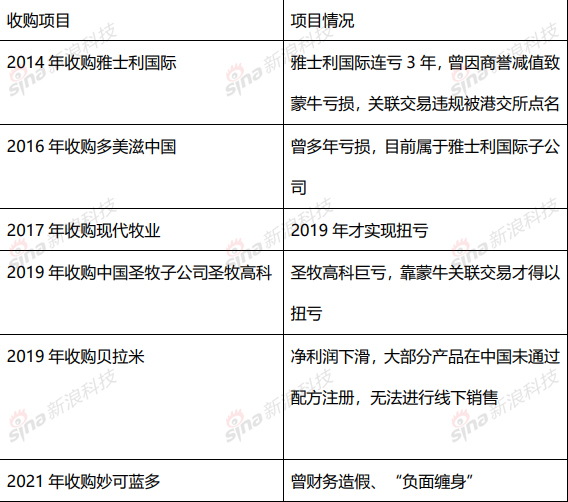 而蒙牛的大刀阔斧的收购背后,版图不断扩大,但是多年的收购,除了已经出售的君乐宝,其余项目收益效果并不理想。比如雅士利国际曾连续3年亏损,2018年雅士利刚刚摆脱亏损,2019年又因为关联交易违规事项被港交所点名,目前净利润依然不高。