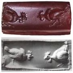 俄罗斯黑海北海岸出土的希腊-波斯印章上的斗鸡,年代可能为公元前4世纪 | Wikimedia Commons, public domain
