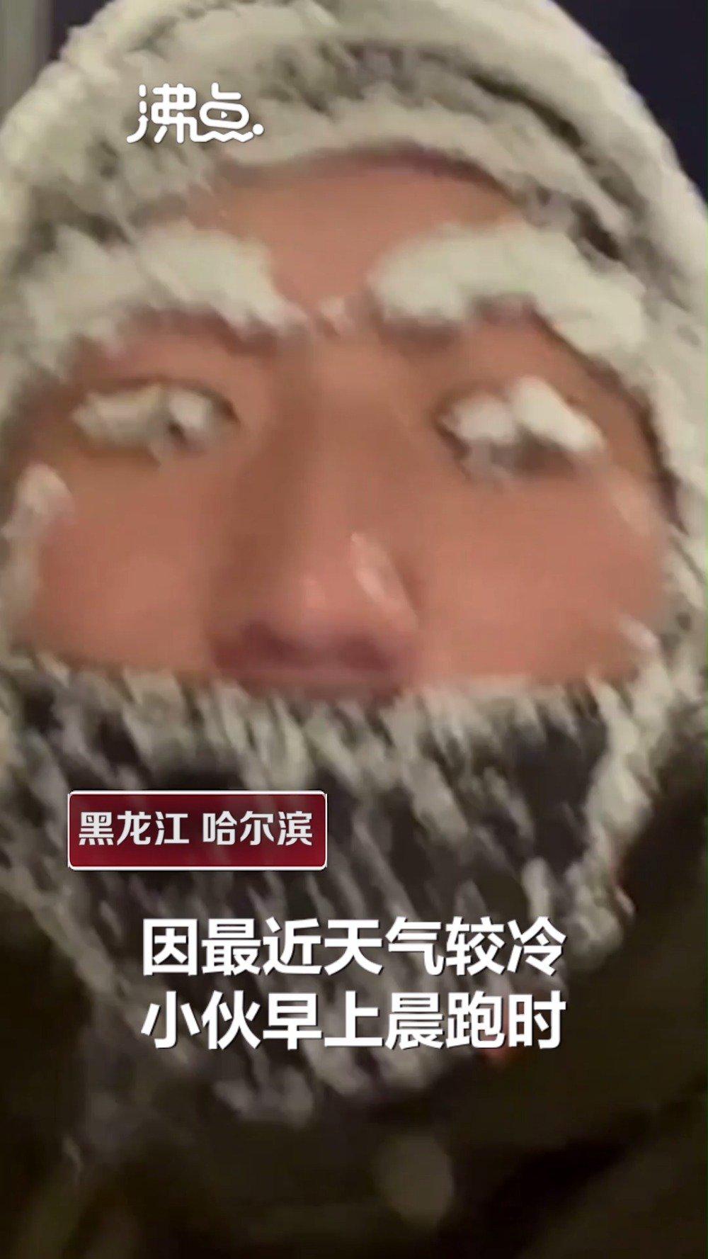 东北有多冷?男子早上跑步眉毛发丝被冻住秒变“圣诞老人”
