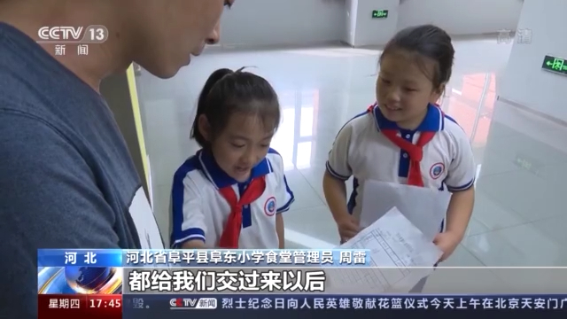 河北省阜平县阜东小学食堂管理员 周雷:这是我们学校学生的食用日志,就是每一天他这个学生来,他签上名,证明他在,中午要吃饭,都给我们交过来以后,我们再统计一共多少人,然后我们再根据人数做饭。如果他没有来我们就把他这一人份去掉,尽量就是咱们国家的每一分钱都花在学生身上。