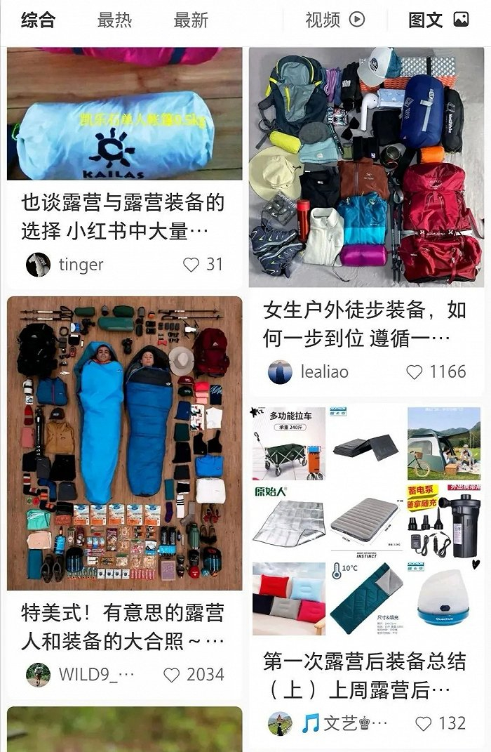 镜文认为,相较于野营,精致露营最重要的是一定要带相机拍好看的视频和照片,没有晒照片就不算“精致”。而想要拍出更好看的照片,就要带更多、更好看的东西。