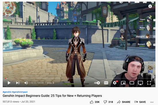 YouTube博主直播玩《原神》