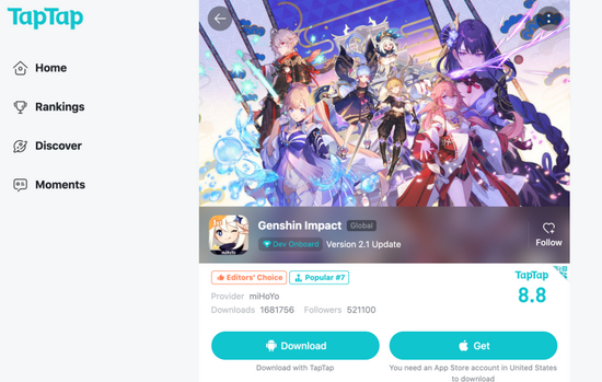 TapTap上的《原神》