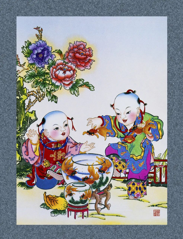 年关将至,不论是超市中循环播放的《恭喜发财》,还是家家户户门口张贴的“福”字或春联13,都能迅速让你放松劳累了一年的身心,安心准备迎接新的一年到来。在众多年味儿的代表物品中,给我印象最深的总是一个“大胖小子怀抱一条大金鱼”的年画。小时候的我总是在想:小朋友竟可以这么丰满?金鱼还可以长这么大?