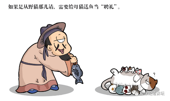 这个时候你就要带一条鱼过去就算是聘礼,即是“穿鱼”,表示你从母猫这里把小猫带回家。