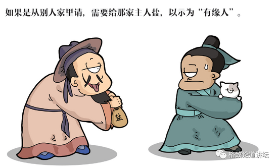 这个时候你就要带一包盐过去,这就被称为“裹盐”,这是个谐音梗,意思是说我跟这只猫是有缘人。