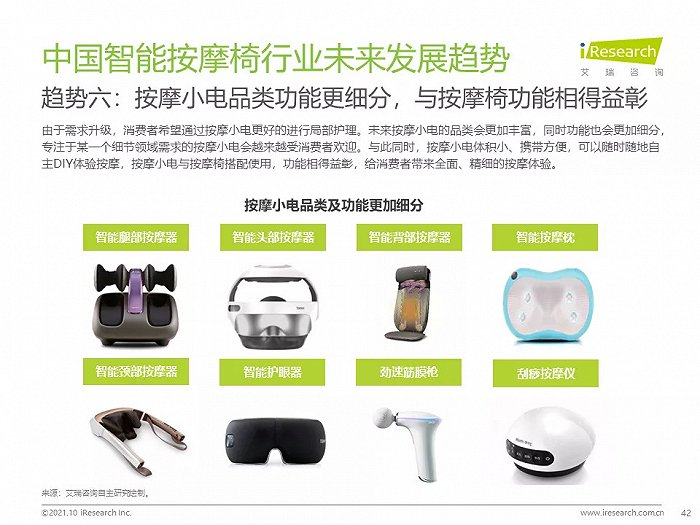 趋势六:按摩小电品类功能更细分,与按摩椅功能相得益彰