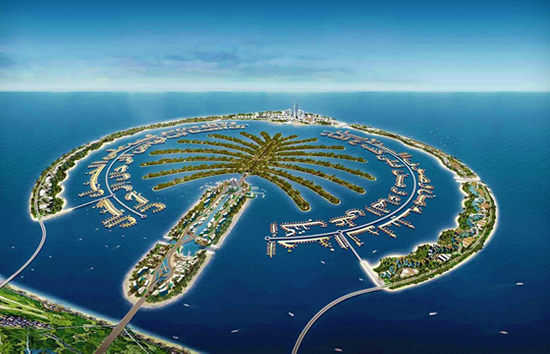 迪拜棕榈岛外围的防浪堤,兼具美观和防护作用