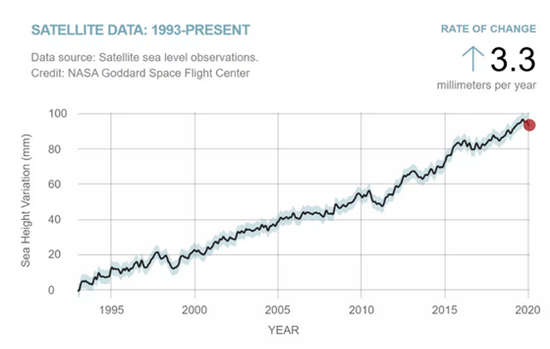 1993-2020卫星实测全球海平面变化幅度,年均上涨3.3毫米