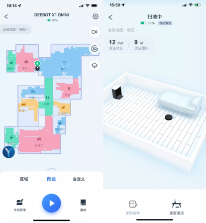 科沃斯地宝X1系列包括X1 OMNI(全能版)和X1 TURBO(自洁版)两款,它们在导航、扫拖能力以及自清洁等基础功能上保持一致,最大的区别就是X1 OMNI支持自动集尘和热风烘干功能,是该系列的旗舰。
