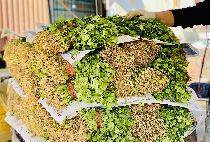 正在批发中的香菜。(图片拍摄:赵晓娟)