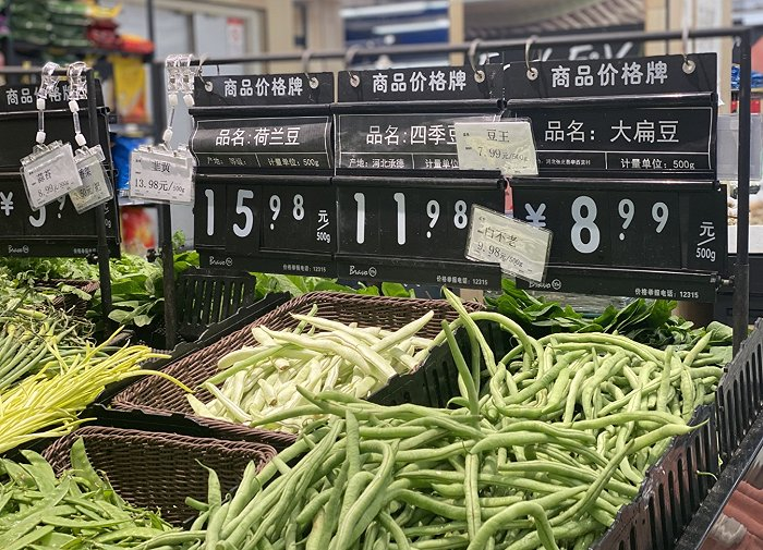 永辉超市蔬菜价格。(图片拍摄:赵晓娟)