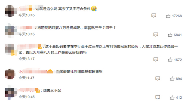 “很多人工作都难找,它8万还招不到人?”,这种极大的反差引起了众人猜忌。一位网友的评论道出了真相,“电视剧《三十而已》的女主王漫妮,努力了好多年连个副店长都当不上,店长哪有那么好干。”