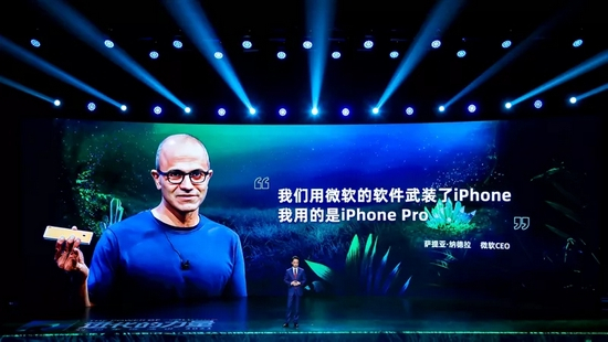 萨提亚说,我手上这不是iPhone,我更喜欢把他称之为iPhone Pro。打开手机一看,里面装的很多都是微软的应用。我们用微软的软件,武装了iPhone。所以,它不是iPhone。它是iPhone Pro。现场的哗然,变成了热烈的掌声。