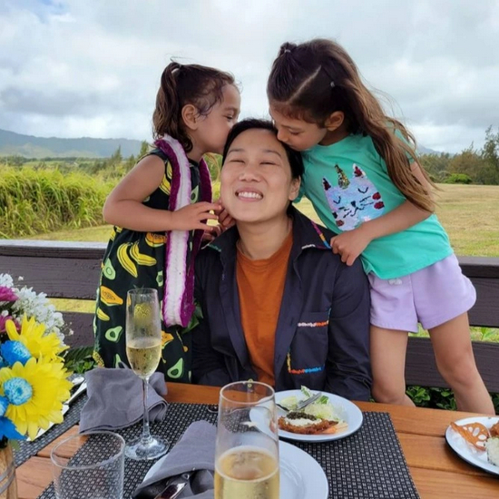 对一双女儿的教养也是没话说。晚上给孩子们读故事,还教她们编程。平常没有工作就在日常遛娃……