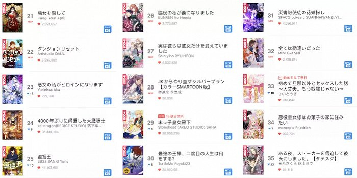 值得一提的是,排在第十位的《复仇的红线~满身耻辱的少女的命运~》这部作品是由Piccomics发行,该发行商是Kakao Japan在2014年8月成立的漫画编辑部。