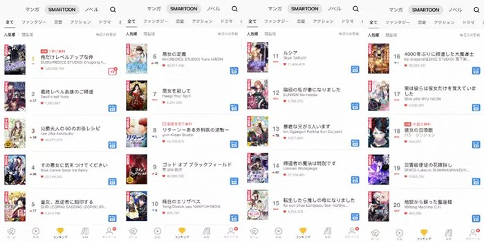 为了应对其他漫画平台的挑战,以及稳固其全球最赚钱的漫画平台的地位,Piccoma在今年4月推出了改版后的页面,将漫画划分为“マンガ”和“Smartoon”两大类,从而细分了传统漫画和网漫。