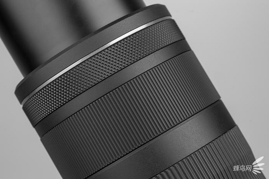 佳能RF100-400mm F5.6-8 IS USM的变焦环还是比较宽大的,表面是条纹状的橡胶蒙皮,手感不错,并且阻尼比设计适中,转动起来不会觉得干涩,从100mm变焦到400mm的转动角度也不会很大,用户可以很轻松的实现变焦;而在对焦环上其还提供了常用的100mm、135mm、200mm、300mm以及400mm的焦段标识,以方便用户随时能看到当前拍摄的焦段。