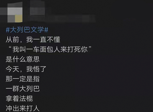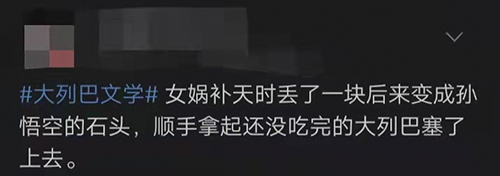 而大列巴文学,就是围绕大列巴惊人的硬度而发散思维写出的一系列段子。一些老梗也因为大列巴重焕新生。