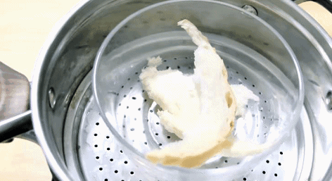 切成片状之后,扔到锅里蒸一下,或者图省事放进微波炉里叮一会。