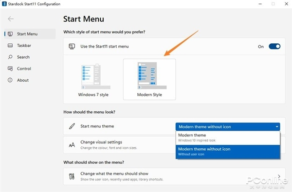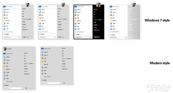 Start 11提供的开始菜单总共提供两种风格,分别是传统的Win7风格以及更现代化的Win10风格。