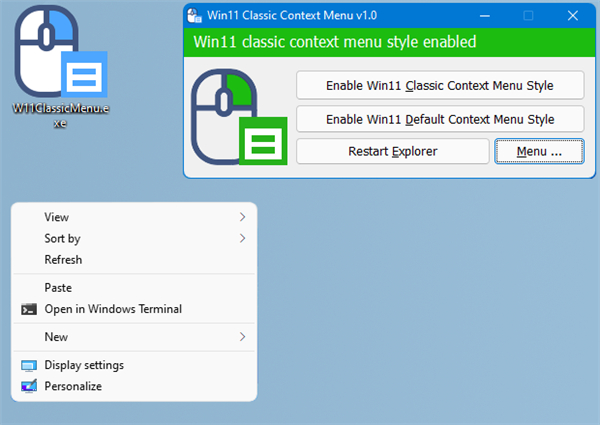 Windows 11 Classic Context Menu的原理是和上文修改注册表的方法一样的,只不过它将这些步骤封装成为了一个绿色小软件,点击一下就可以修改注册表,实现同样的功效。